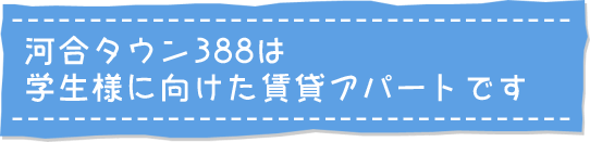 この点、河合タウン388は私たちオーナーが近隣に住んでいますので、困ったことがあれば出来る限りのご支援をいたします。